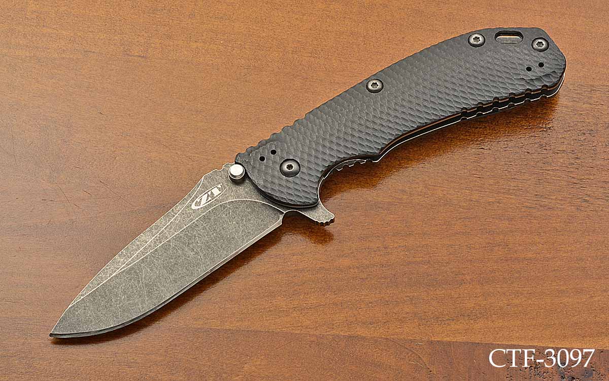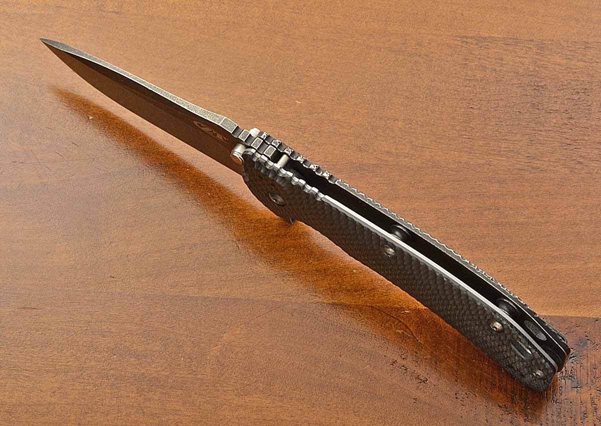 • Textured and blackwashed titanium frame lock with overtravel stop