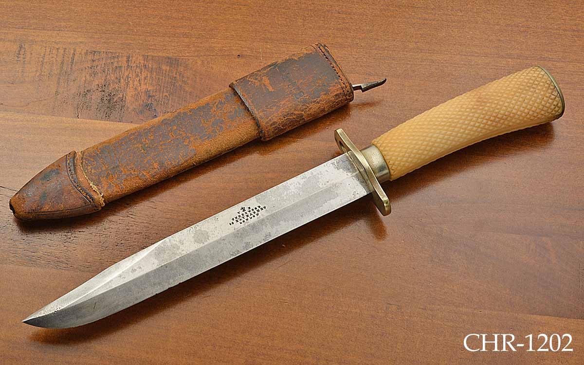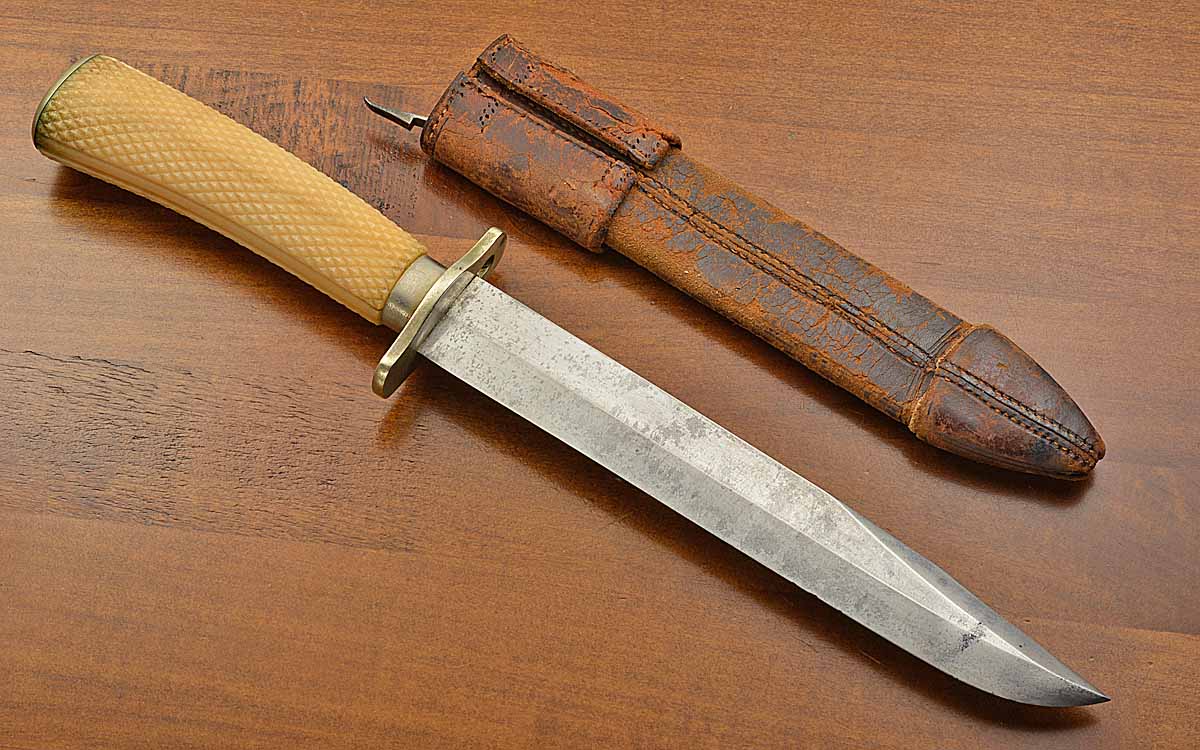 - Dates to the late 1800's, good to excellent condition (blade has many stains and light pitting spots, as well as significant horizontal and vertical scratching, handle is intact with no signs of cracks or shrinkage)