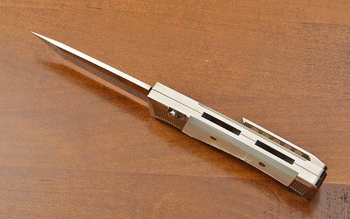 - 3 3/8" blade of stainless steel, mirror polish, 7 7/8" opened length