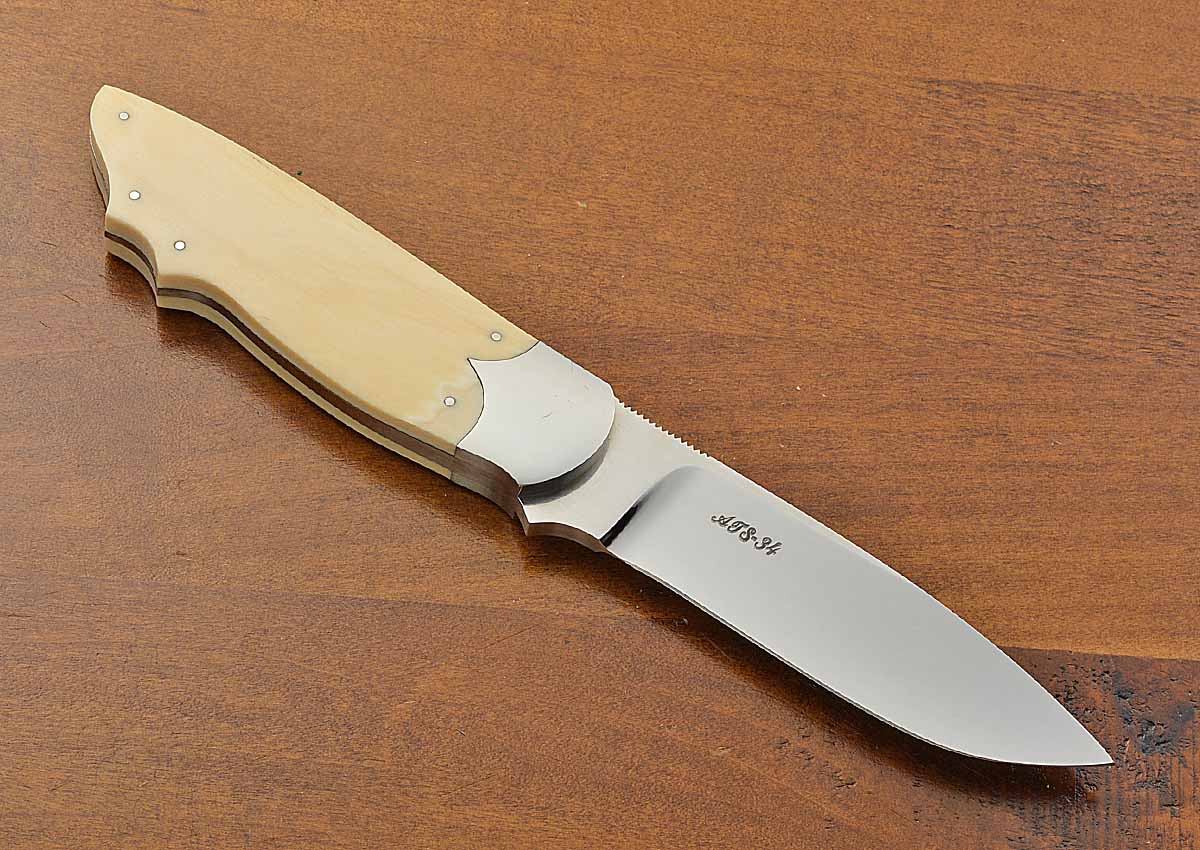 • 3 7/8" blade of ATS 34, mirror polish, 8 1/8" overall length