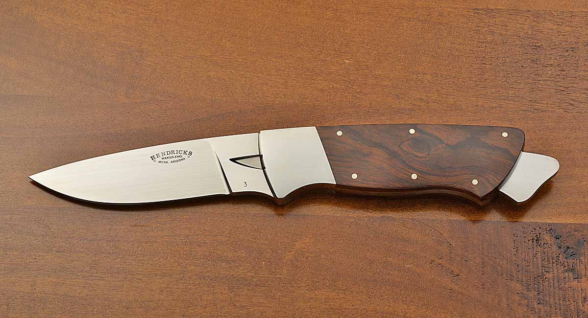 • Caping knife nestled in the butt has a 2" blade and 5 3/4" overall length