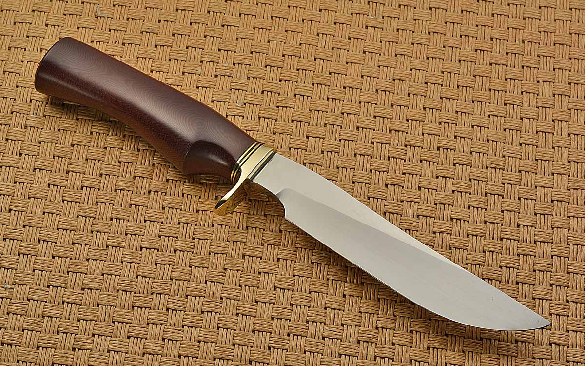 - Single finger grip shaped maroon micarta handle