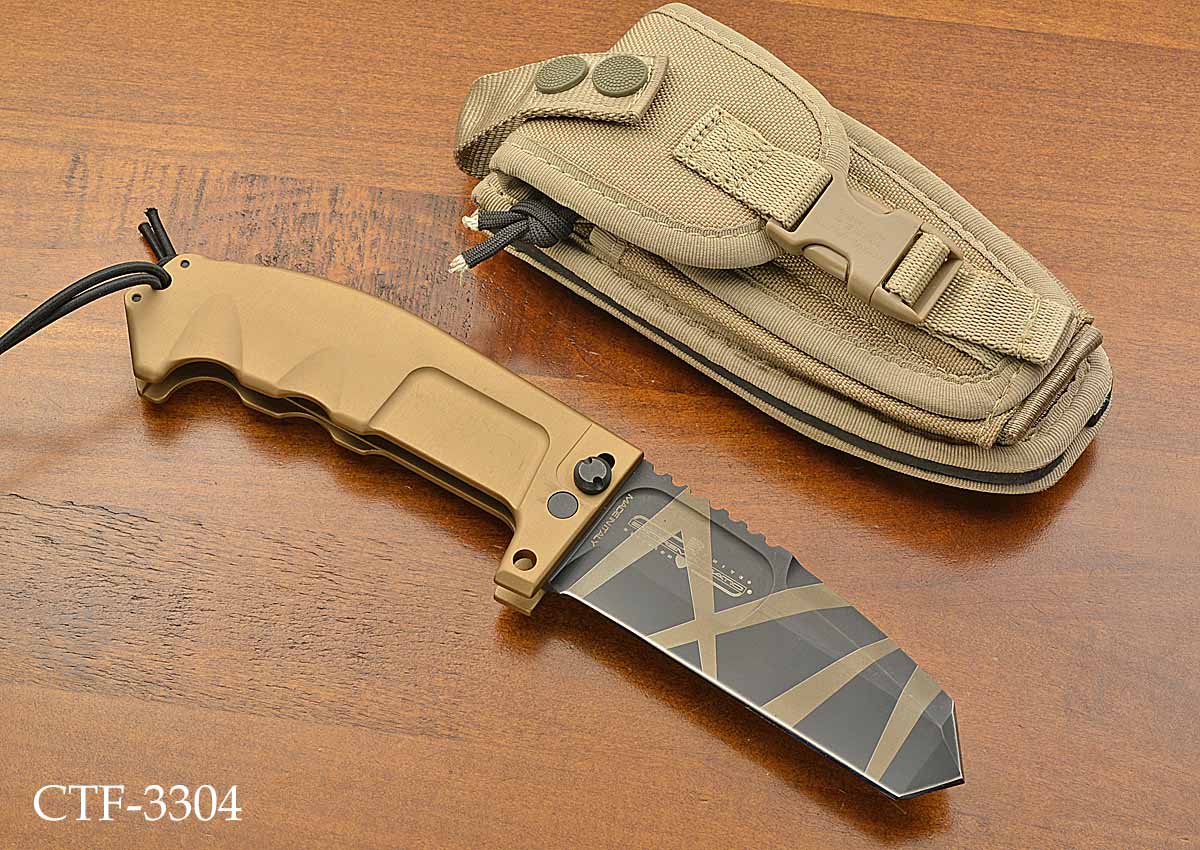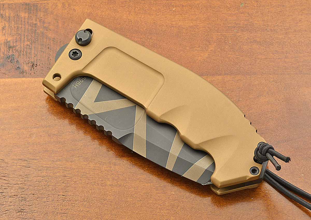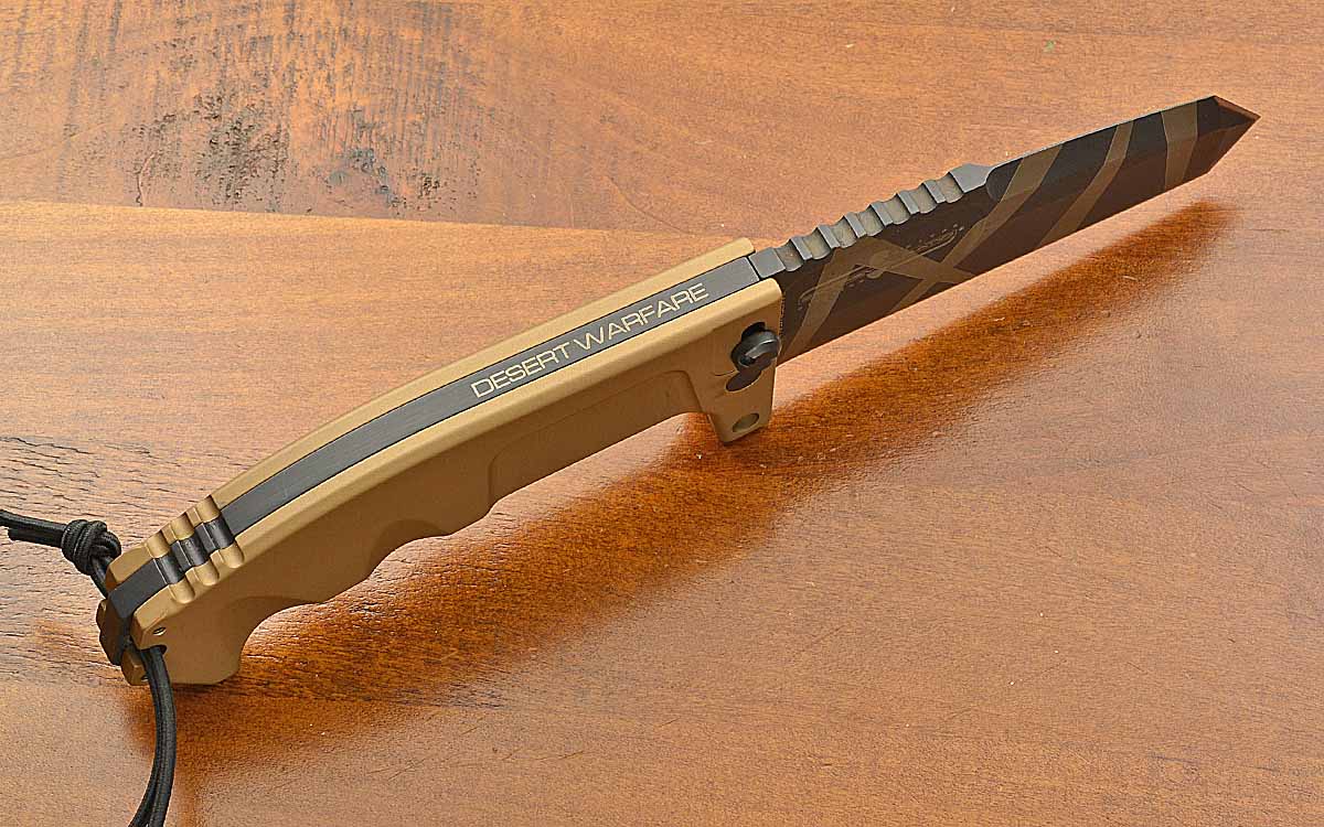- 4 5/8" blade of N690, 0.24" stock, Desert Warfare finish, 10 1/4" opened length