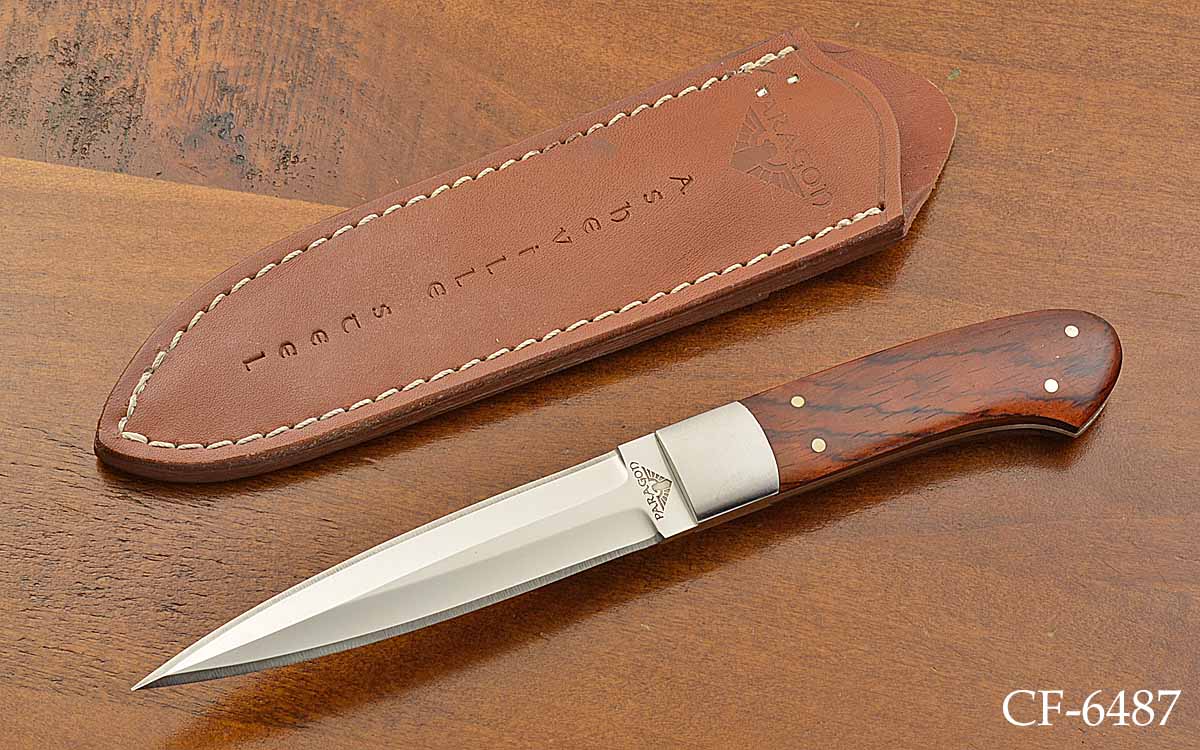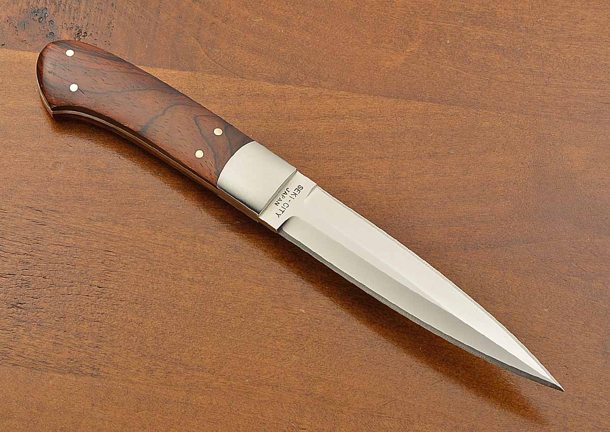 - Excellent condition (there are a few light horizontal scratches on the bolsters, and the belt loop has been removed from the sheath)