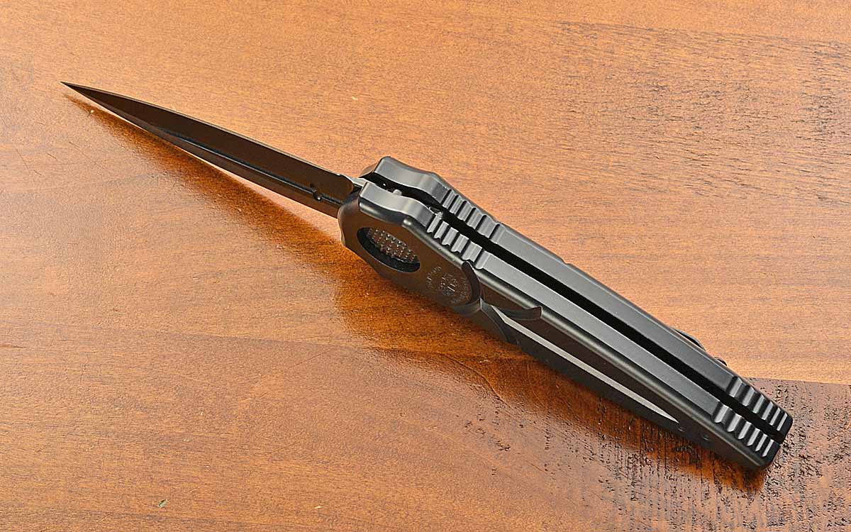 • Deployment is caused by depressing the pivot on both sides and allowing gravity and a flick of the wrist to rotate the blade into the open position.